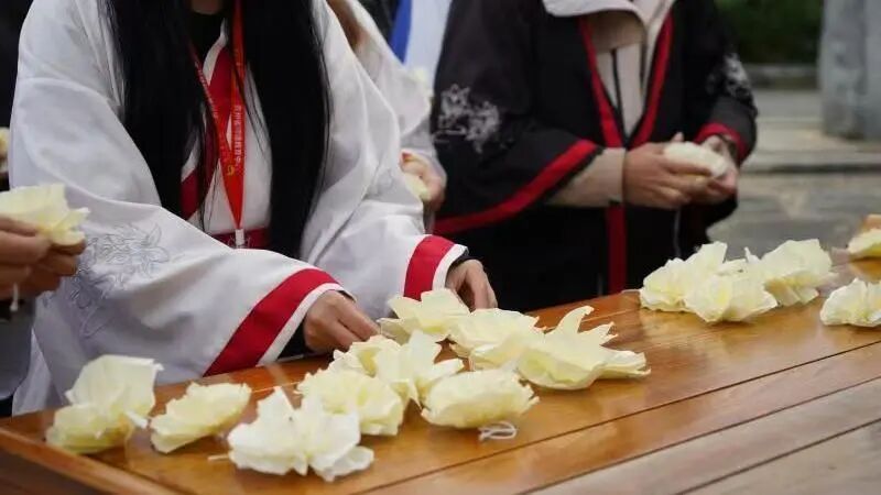 学生们在研学导师引领下,依次向阳明先生行参拜礼、献上宣纸花。修文县实验小学学生们稚嫩而认真,在巍然屹立的铜像下展现着当下时代“文化传承”的重要使命。